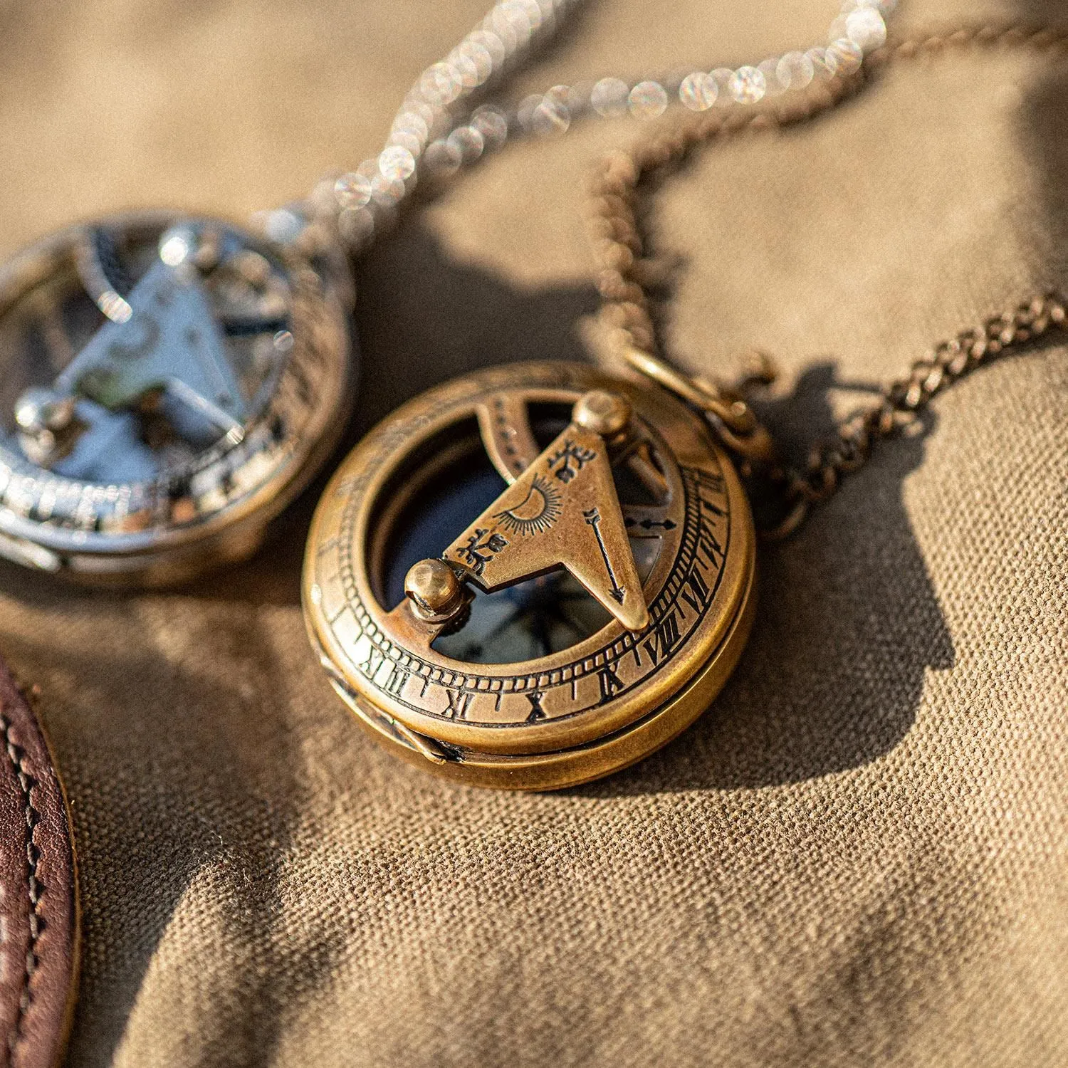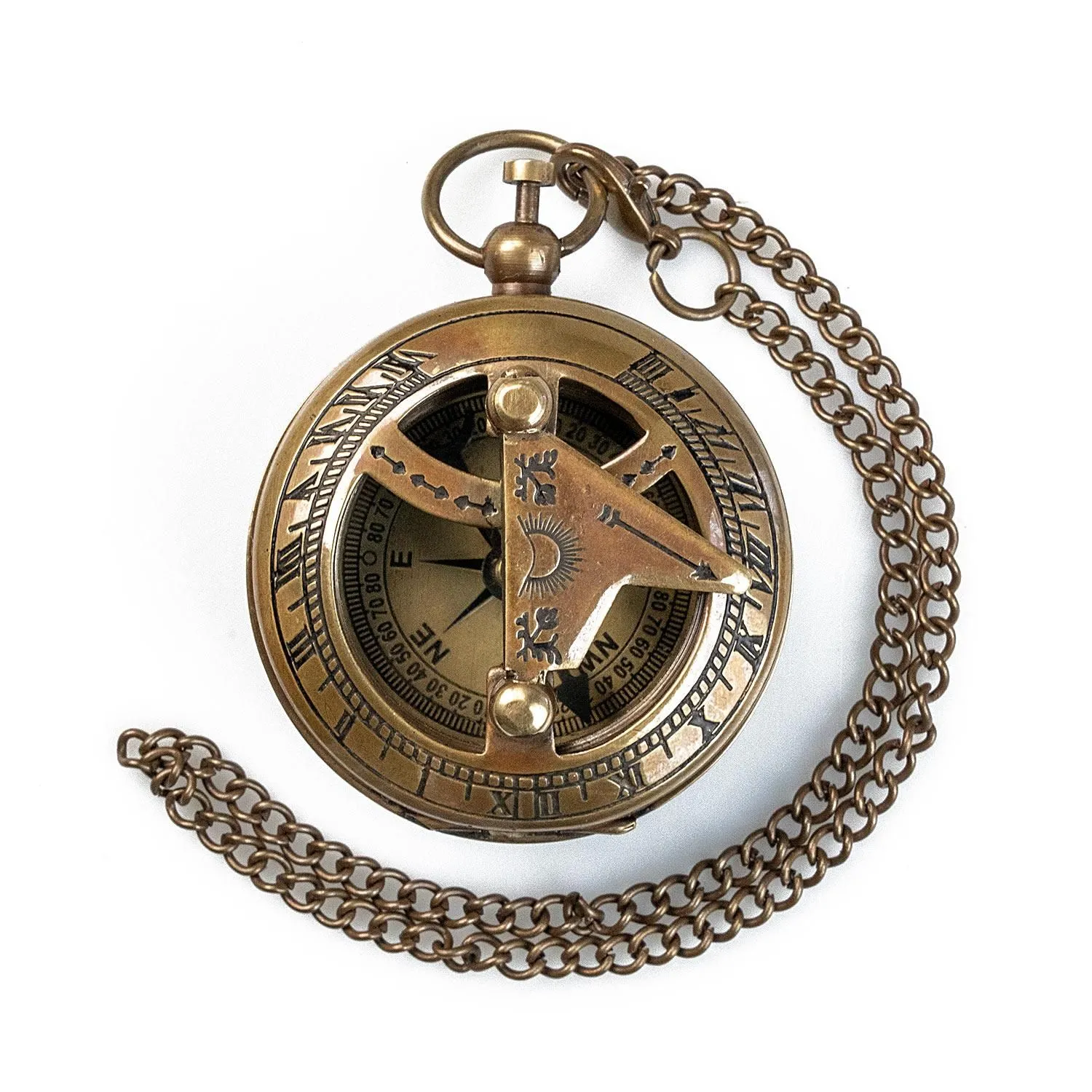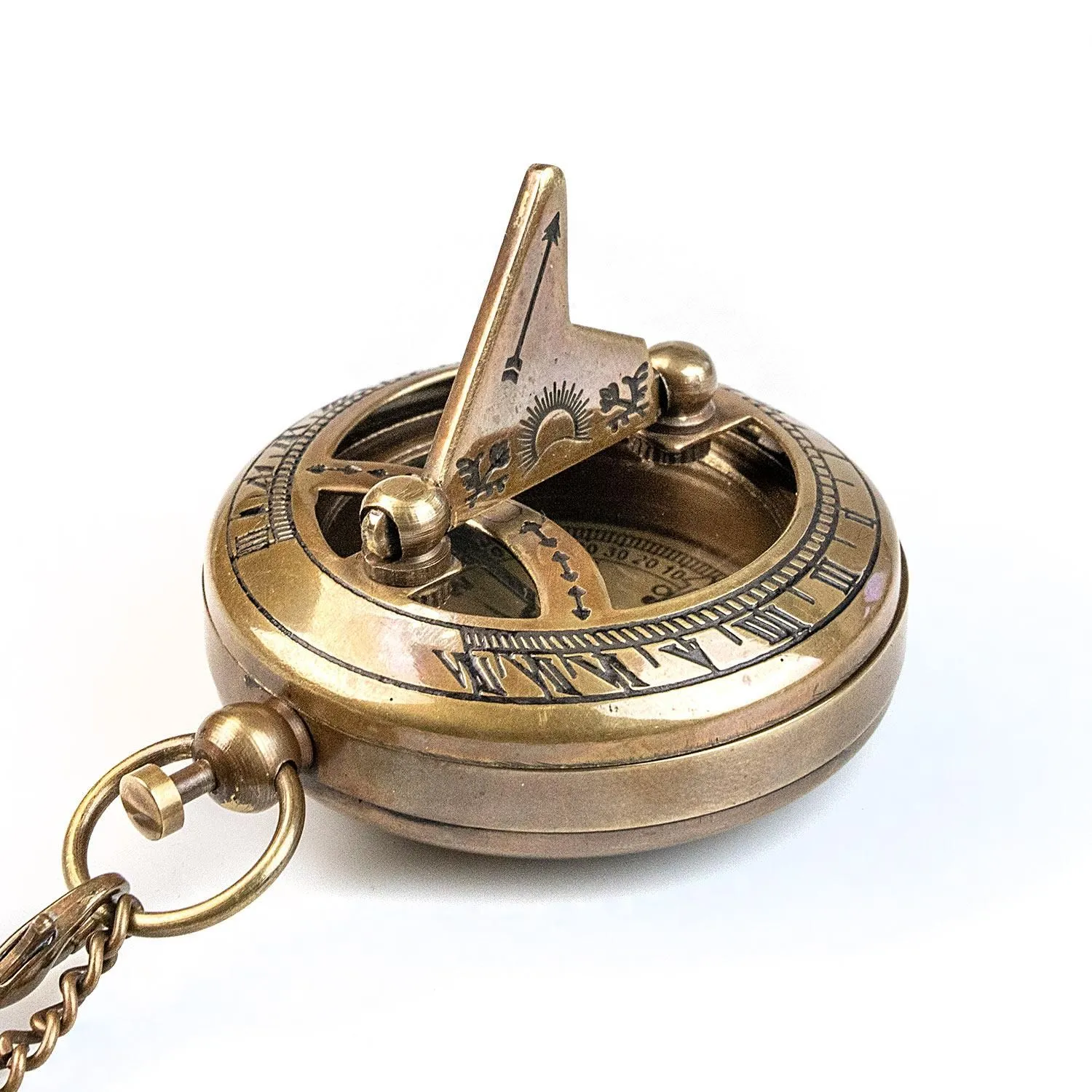 这是一款利用阳光与磁力来知晓时间与方向的、带古典指南针的日晷。